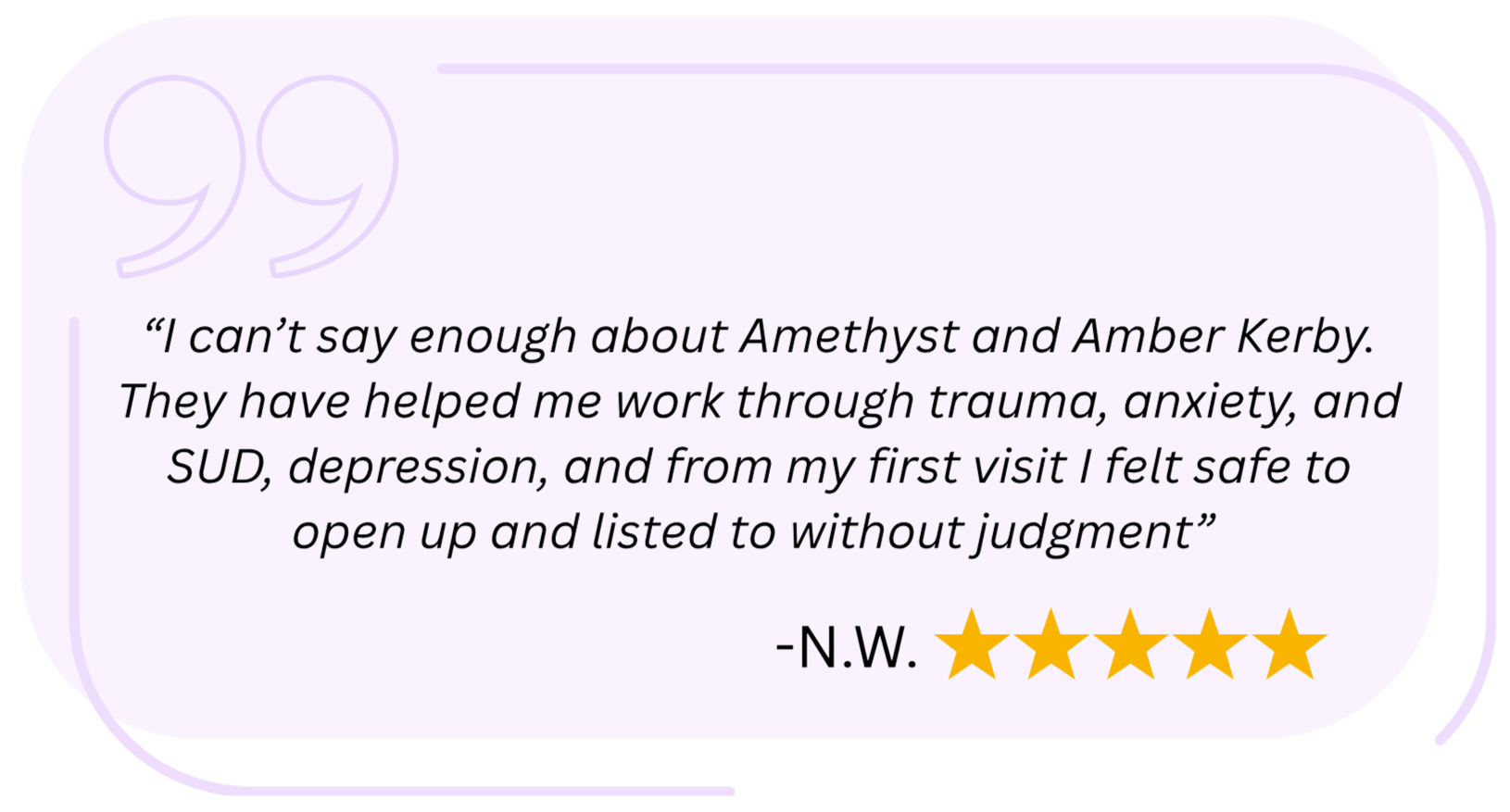 Amethyst does not offer ketamine, ECT, TMS, IOP, PHP, Crisis/Emergency services, detox services, Court-ordered treatments, bariatric evaluations, other surgical clearances, employment assessments, child custody determinations, weapons ownership evaluations. Additionally, we do not provide high dose stimulants, a combination of stimulants and benzodiazepines, long term benzodiazepine use, injectables, Vivitrol, Suboxone/Methadone or other MAT treatments.